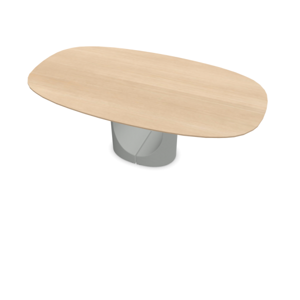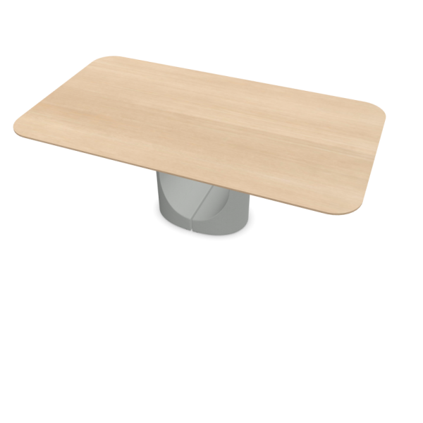 Udina Work ist der ideale Tisch für den Konferenzbereich – eine superelliptische Tischplatte aus Massivholz, getragen von einem Betonsockel, dessen skulpturale Form im Zentrum eine präzise Trennfuge aufweist. Die Tischplatten sind in verschiedenen Größen und in den Formen (oval, rechteckig mit abgerundeten Ecken und rund) erhältlich, jeweils mit passendem Sockel.